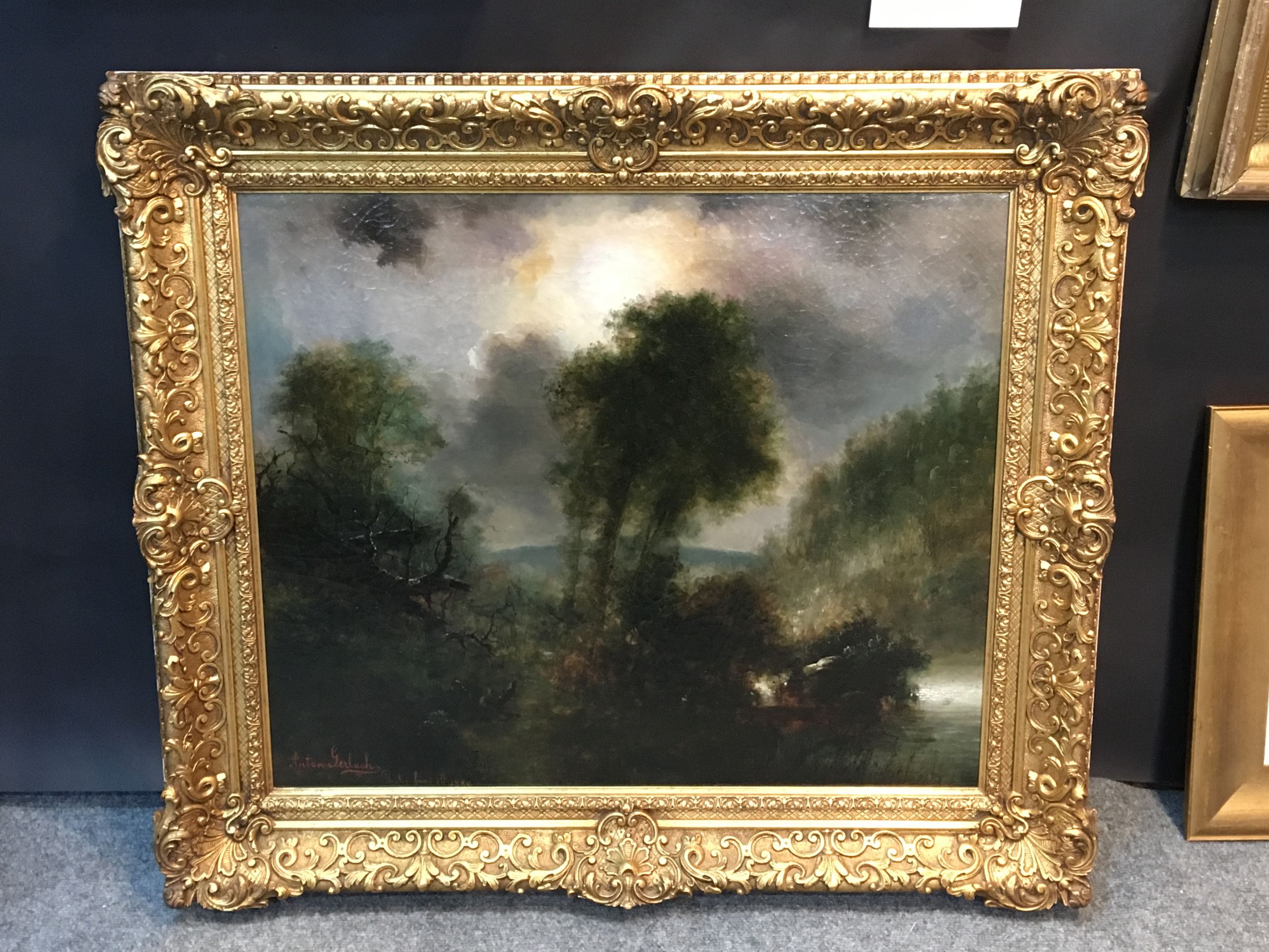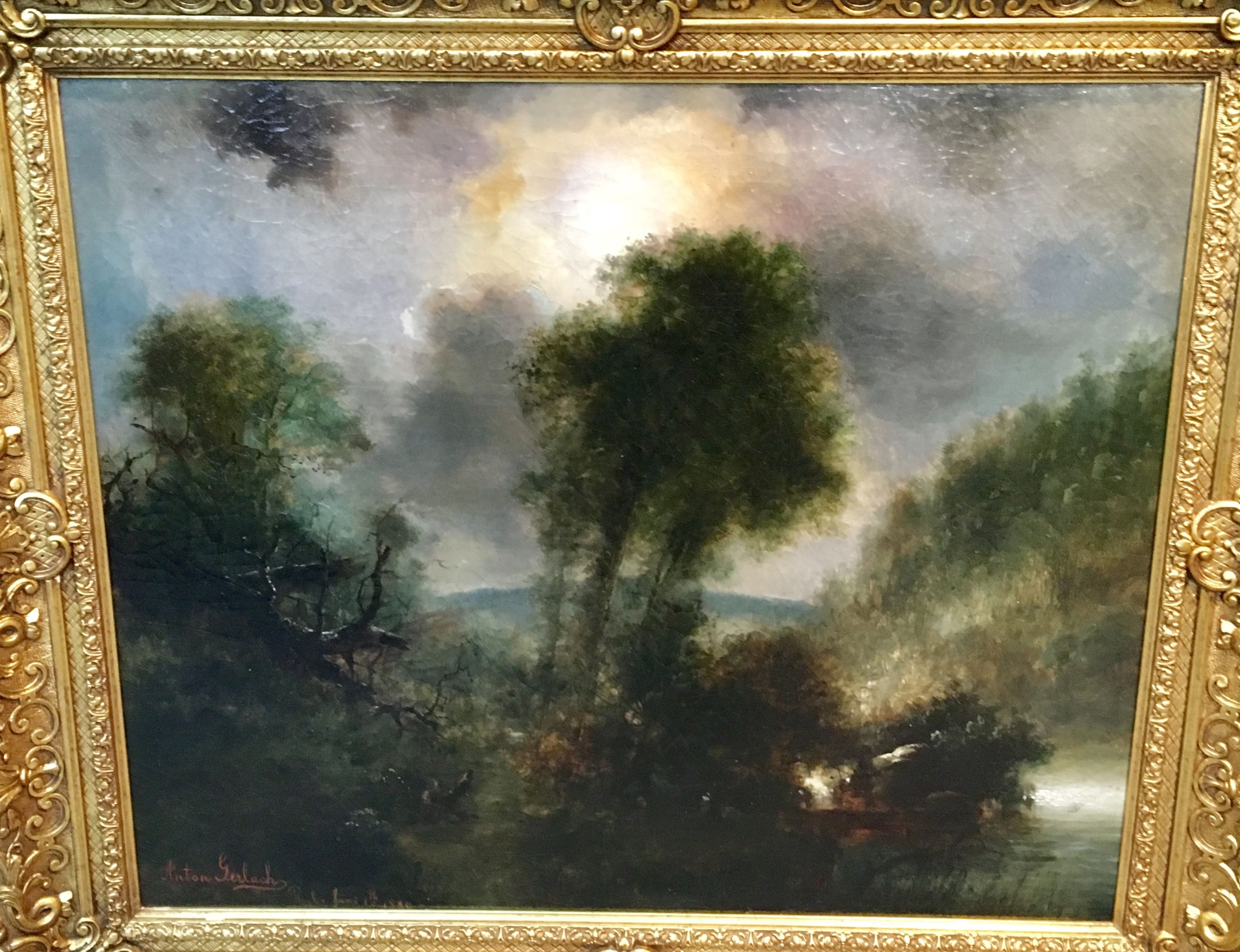 Anton Gerlach [ 19th century] American Landscape ,Philadelphia circa 1880 oil on canvas 23 x 28 original ,period frame