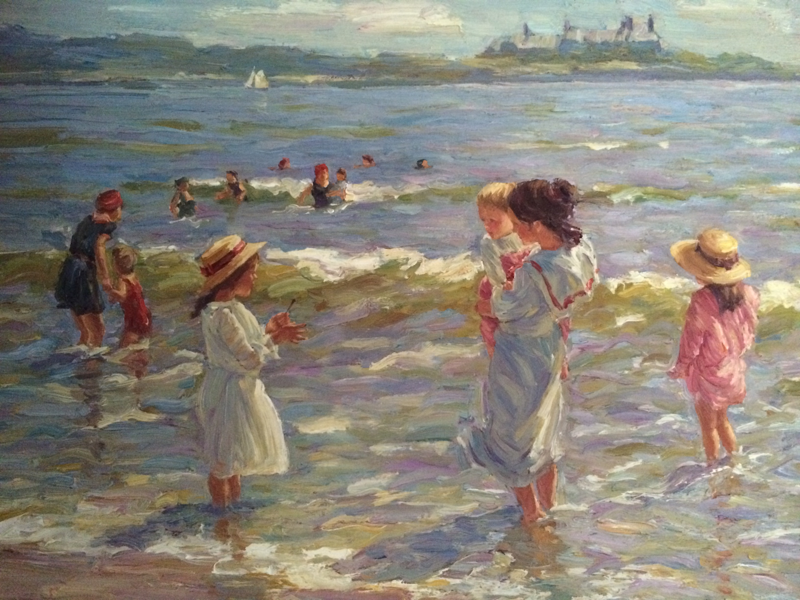 Brian Becken (1949- ) Impressionist Beach scene with Children “Baileys Beach ,Newport” circa 1970