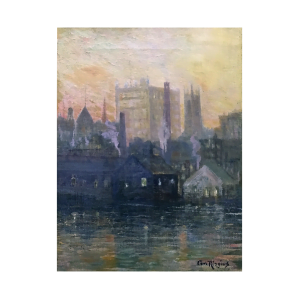 Carl Ringius [1879-1950] : Cityscape along the River, ca.1920s.