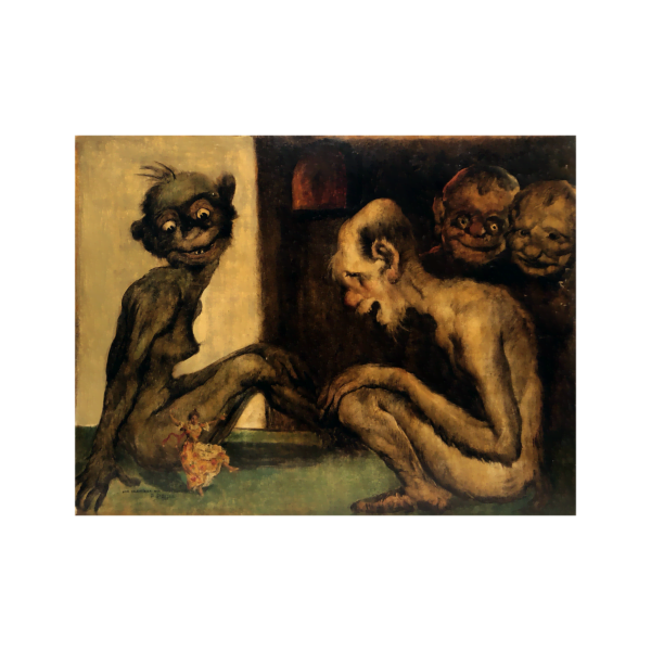 Signed, titled and dated at lower left : ‘Un Valenciano en el infierno [A Valencian in hell]’ / ‘D Sabater’ / ‘1926’.