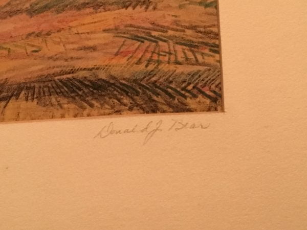Hand signed in pencil in print margin at lower right & dated within print : ‘Donald J. Bear’ & ‘1945’.