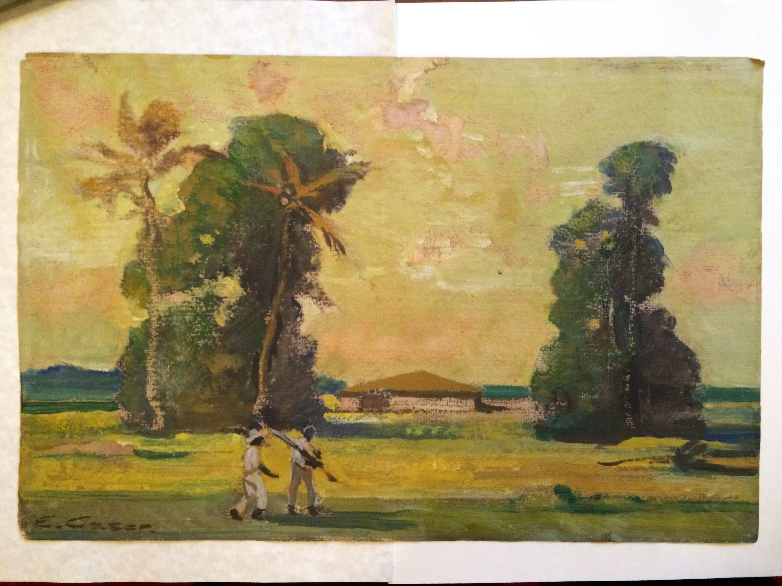 Caser is represented in the National Bank in Toledo, Ohio, by a huge mural which has for its theme: “Anthony Wayne and the Indians at the Marmoux River”; also here in New York he has four twelve-foot murals at the Engineer’s Club, as well as a picture at the Salmagundi Club, and the Boston Art Club. Among his prizes were a Silver medal at San Francisco World’s Fair, the W. A. Clark Prize at National Academy and others.