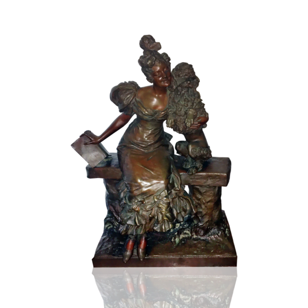 Van der Straeten’s figures are detailed and inspired by the French artist Antoine Watteau (1684-1721) and similar in style to the Italian sculptor Emmanuel Villanis (1858-1914). The work is Art Nouveau with an emphasis on the figure. His works have been produced in large numbers by French foundries Paris Bronzes Society, Pinedo and by ceramsist Friedrich Goldscheider.