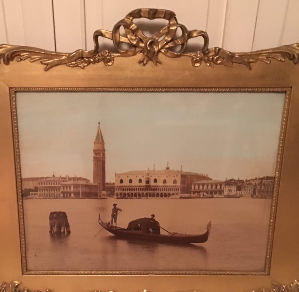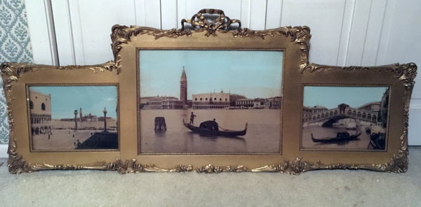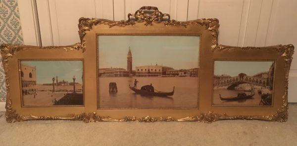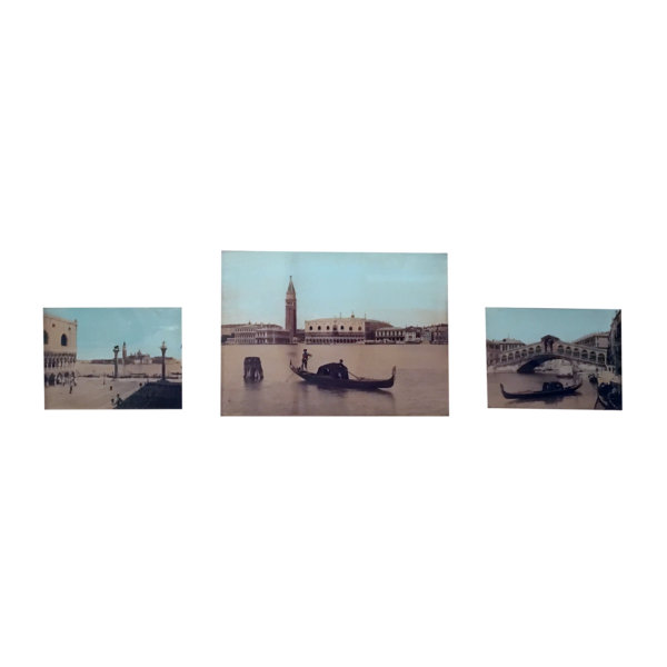 Grand tour photograph of Venice hand-colored triptych, ca.1880.