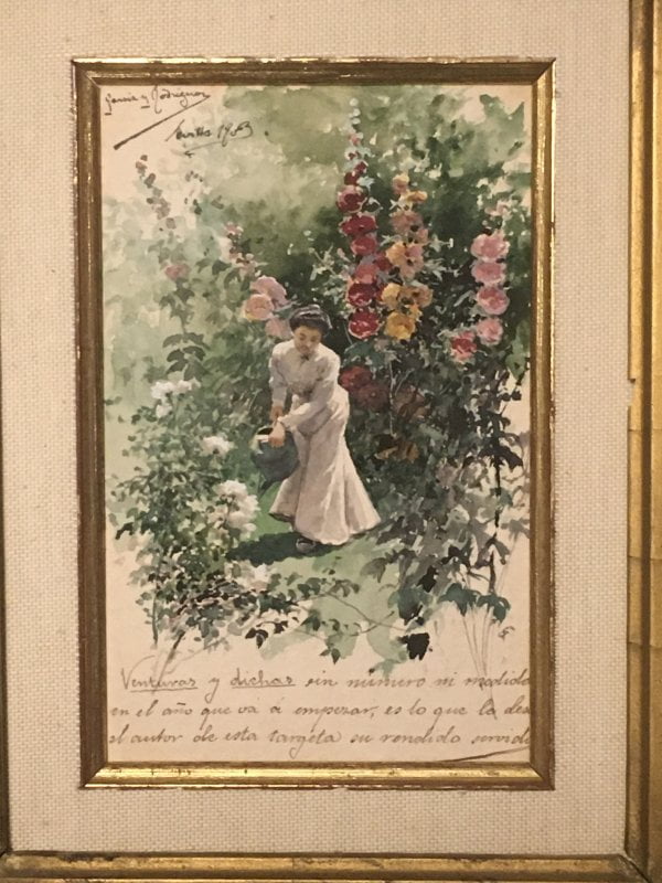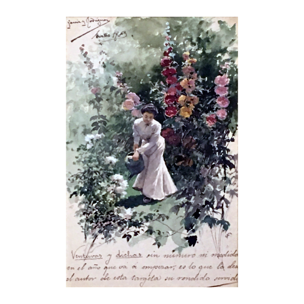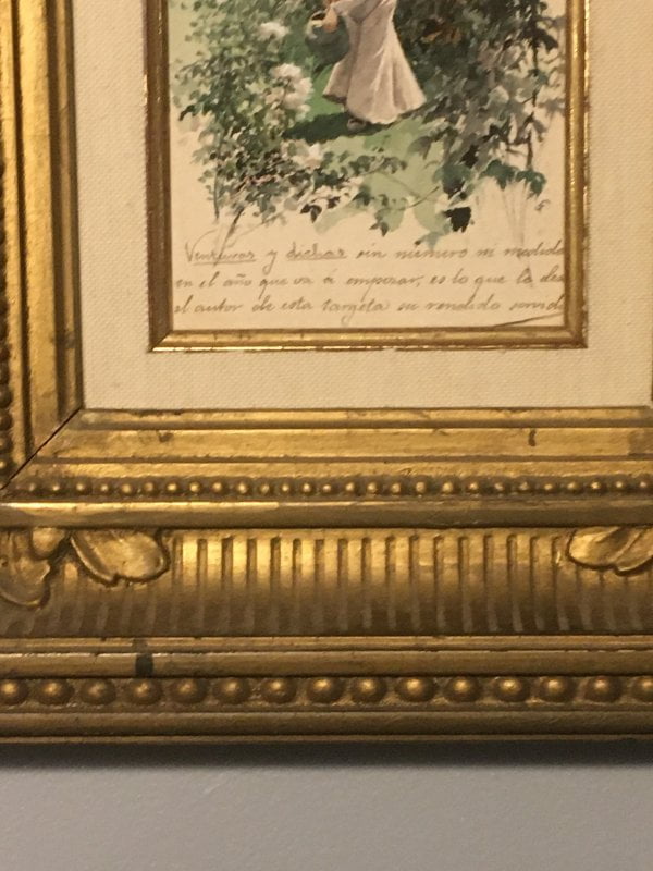 Text: ‘Venturas y dichas en mesmero mi modiole en el año que osi si empeoran, es lo que le deseo el autor ole esta tarjeta en vendido servido [Ventures and sayings at the same time my modiole in the year that if they start, is what the author gave him ole this tangerine in sold served OR Venturas and said in mesmero my modiole in the year that if they worsen, is what I wish the author ole this card in sold served – [unclear exact note]].