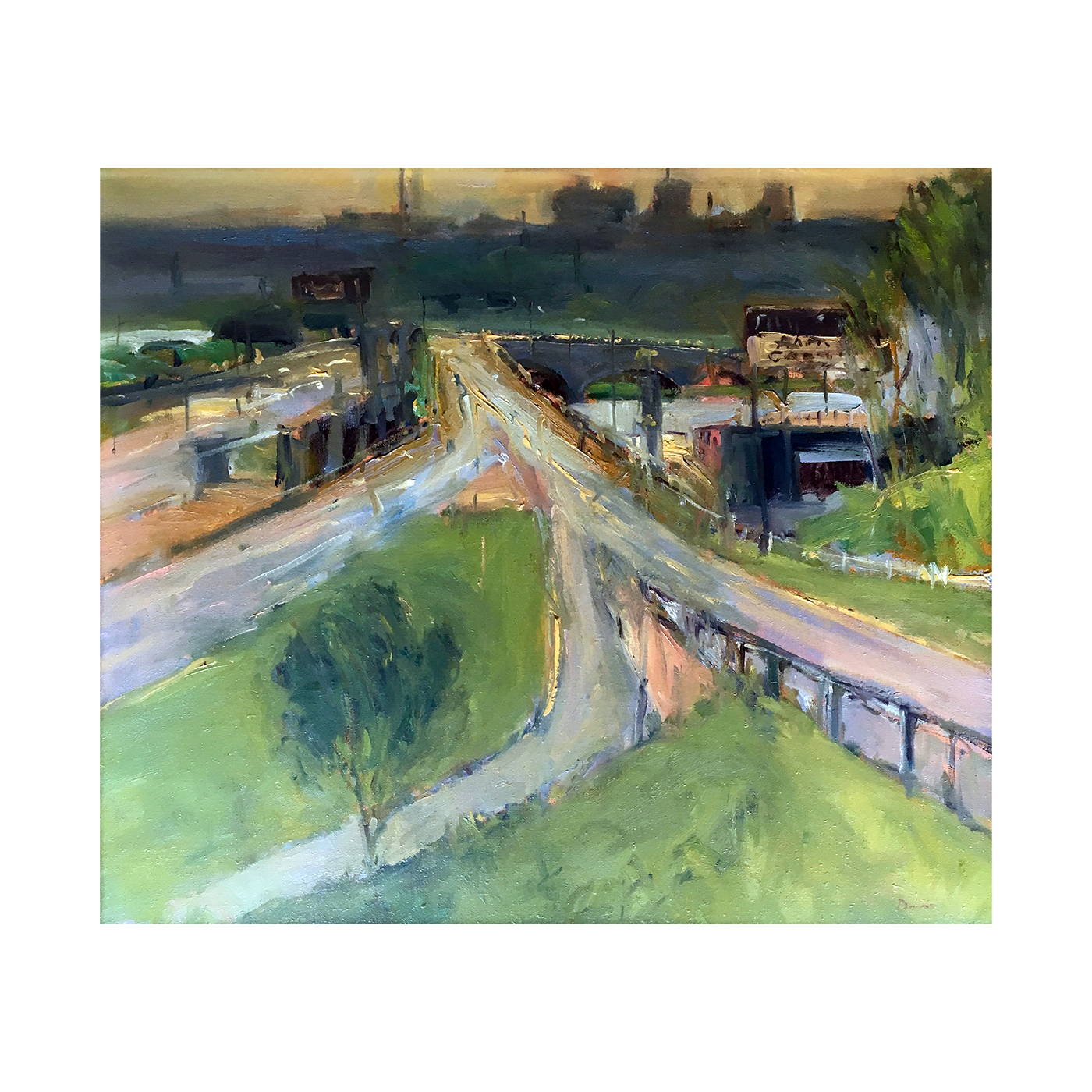 Michael Davis [1945- ] American “On-Ramp , I 95” circa 1980’s oil on canvas 24 x 28 inches