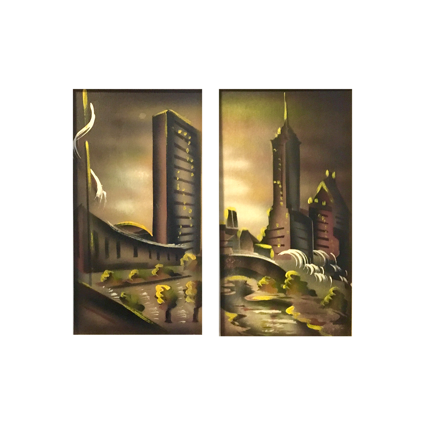 Pair of New York City cityscapes, ca.1960