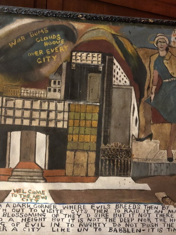 – Based on research, this painting was inspired or painted during a brief trip to Baltimore, MD by the Reverend in 1949.