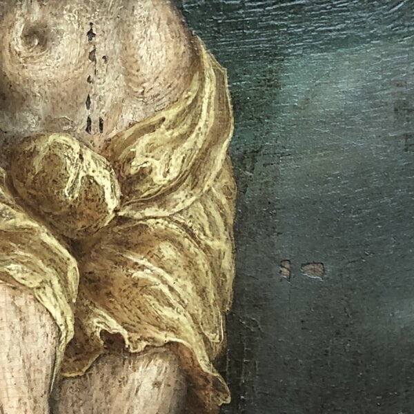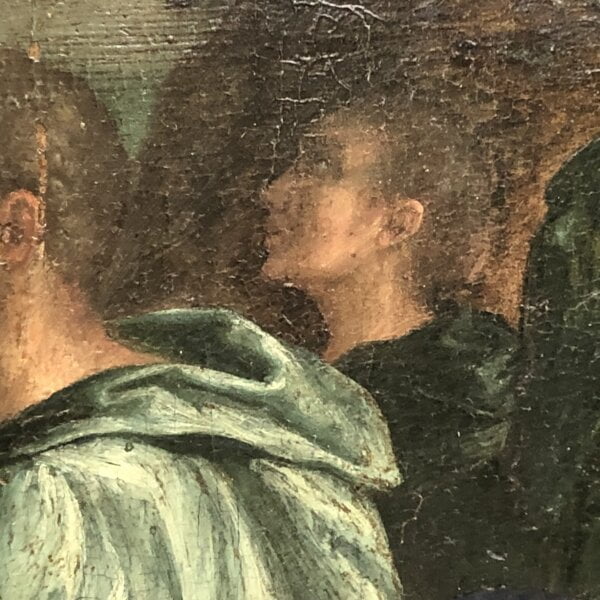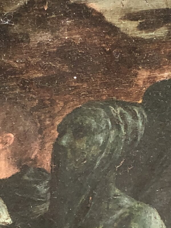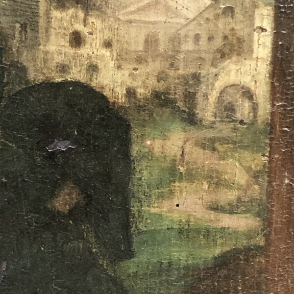 Slight in-painting throughout the painting. Professionally restored. Frame is late 18th-century,