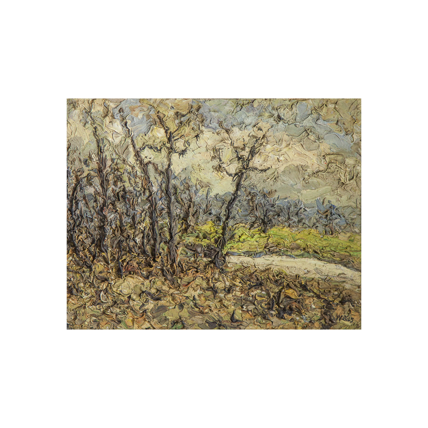William Bils [1872-1944] was a German-born landscape painter who settled in Brooklyn, NY. Bils’ training is unknown but he may have been trained in Paris, living in Drancy, Paris and in his native Germany. His work was influenced by the Düsseldorf school and Barbizon school of painting which could indicate that he comes from Dusseldorf. Bils appears in Brooklyn newspapers as a renter of rooms in his home, seven bedrooms, near Prospect Park, Brooklyn at 628 Bergen Street in 1911 and 1912. Prospect Park, most probably due to its proximity became the artist’s prime subject for his art work. Bils had a wife, Anna Bils, a son that past before reaching the age of one (also named William Bils [1910]), and another son Bernard Bils. The artist’s work is very thickly painted and the colors are greyed with white. Bils died on April 3, 1944.